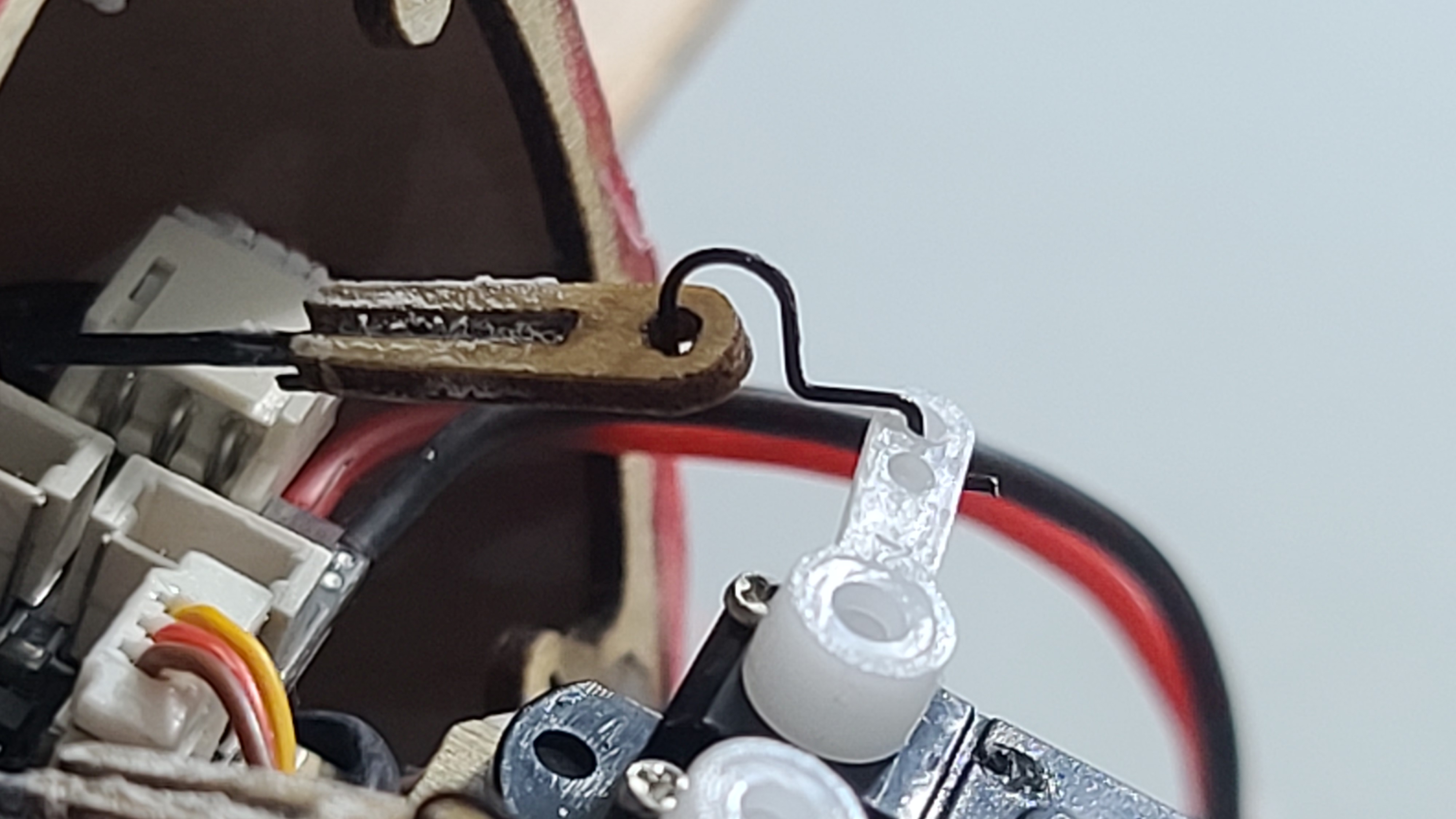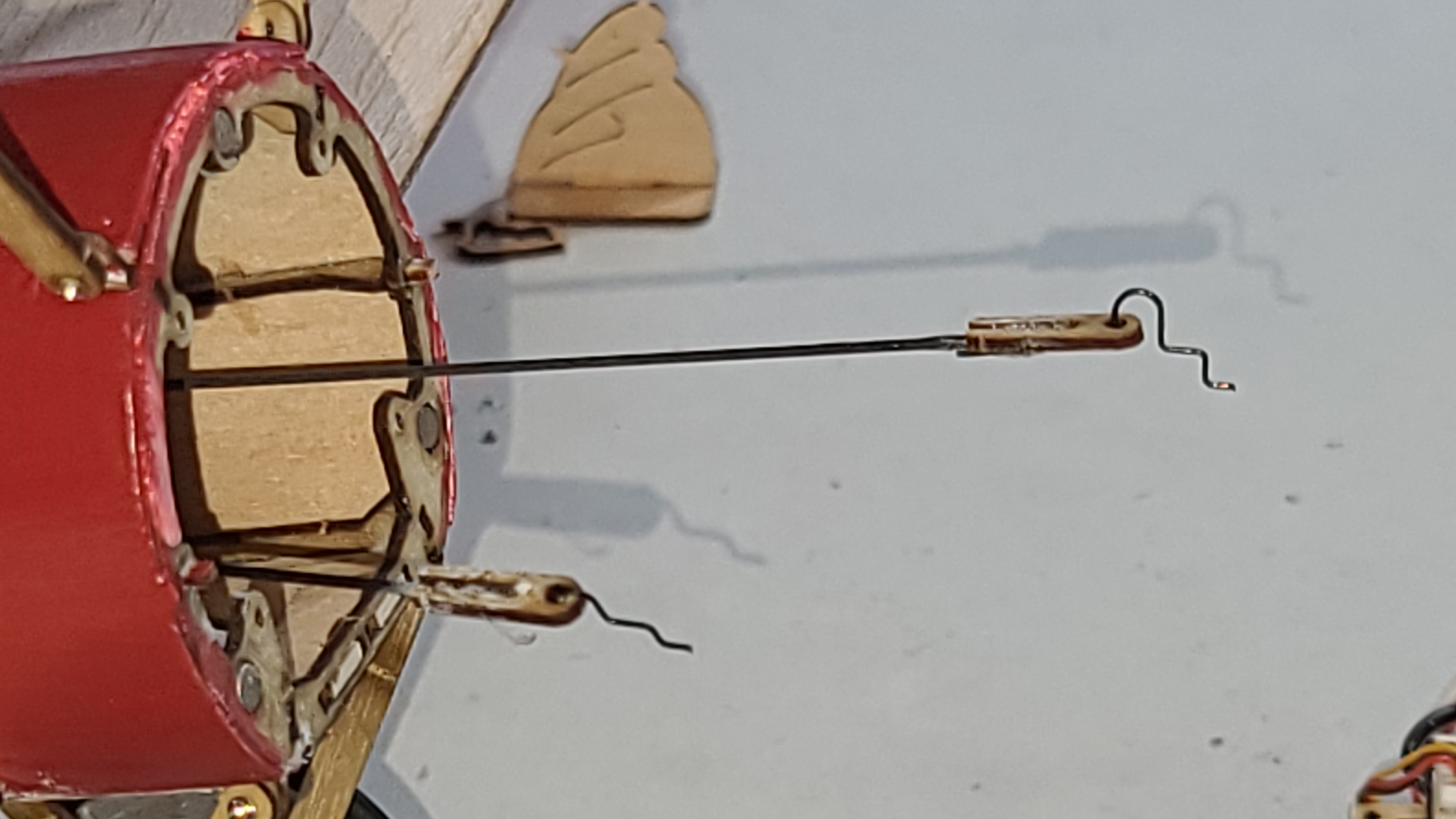 The Instructions at Step 6, picture 5 shows how to connect the “6” wooden pieces to the end of the pushrods and then attaching them to the servo arms. But the picture is all you get and it’s really not clear how to connect the wire pieces provided to the servo arms. Zooming in the picture on the instructions doesn’t make it clear, because the picture is so grainy.