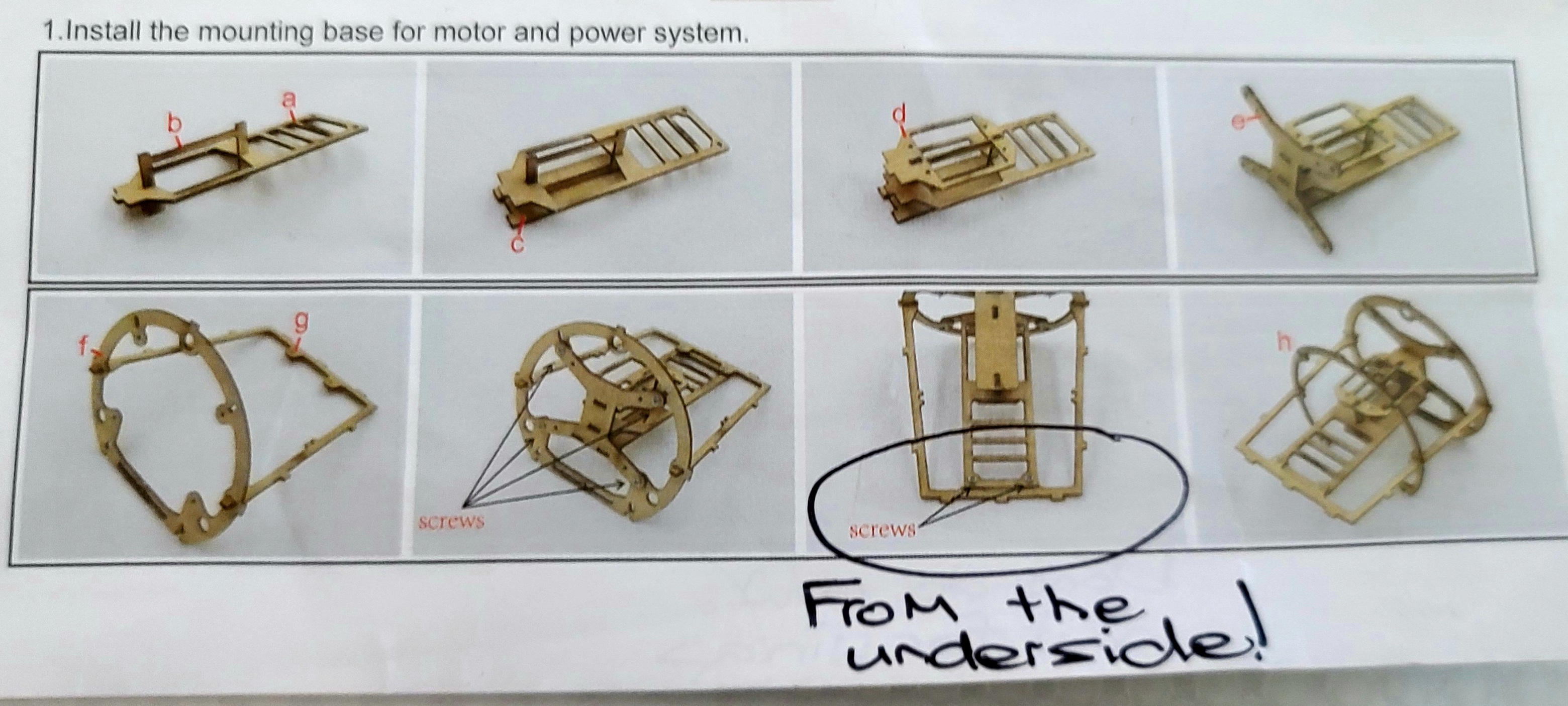There are several small magnets included and the instructions are very precise about where they need to be placed, but gives no hint about polarity. For example it says to put two magnets on the underside of the cowling. This is to hold the cowling in place. Then somewhere else in the build it says put two magnets on the brackets at the front of the frame that hold the cowling. If you don’t think ahead, you could install these two magnets so that when you try to put the cowling on it will bounce right out, rather than clicking into place. You need to get the polarity right for each and every one.