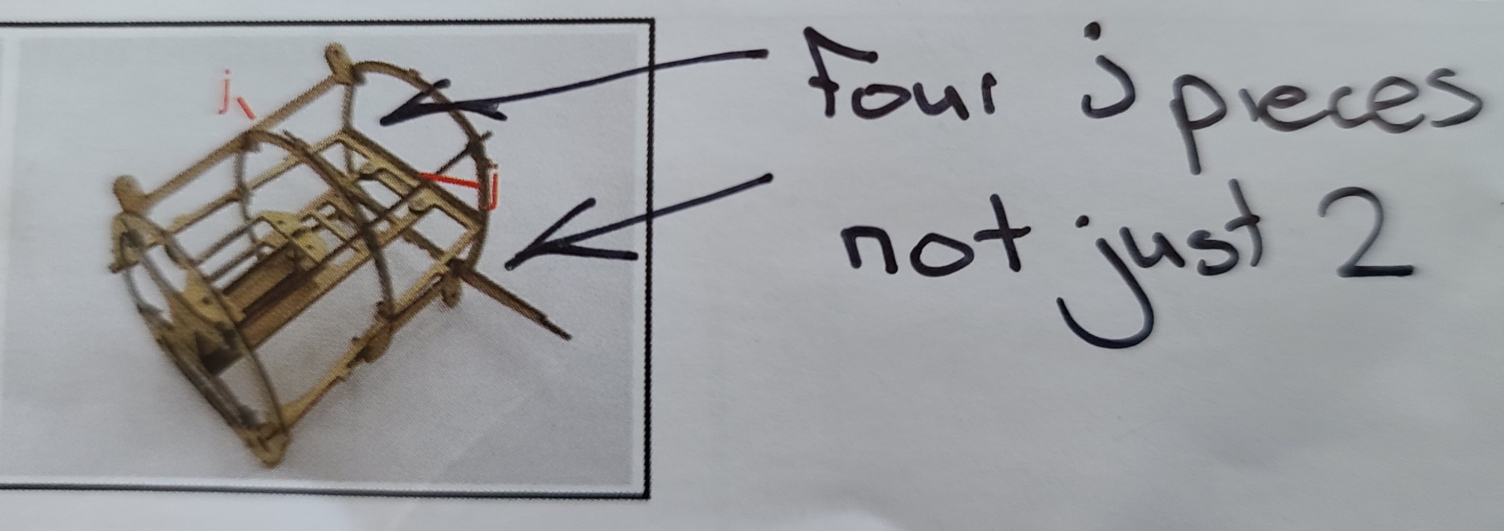 The Instructions only show 2 – actually the picture shows all 4 pieces, but only has 2 red arrows showing 2 “j” pieces to be installed. Find all 4 of these and install them now. It will be very difficult to fix this later if you miss it now.
