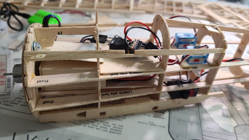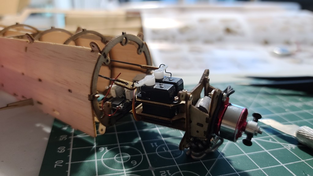 There is very little information in the instructions about electronics. The kit I ordered included a brushless motor, but the instructions which described how to install it described a different one, so I had to “figure it out”. There was nothing about how to install an ESC, receiver or servos.