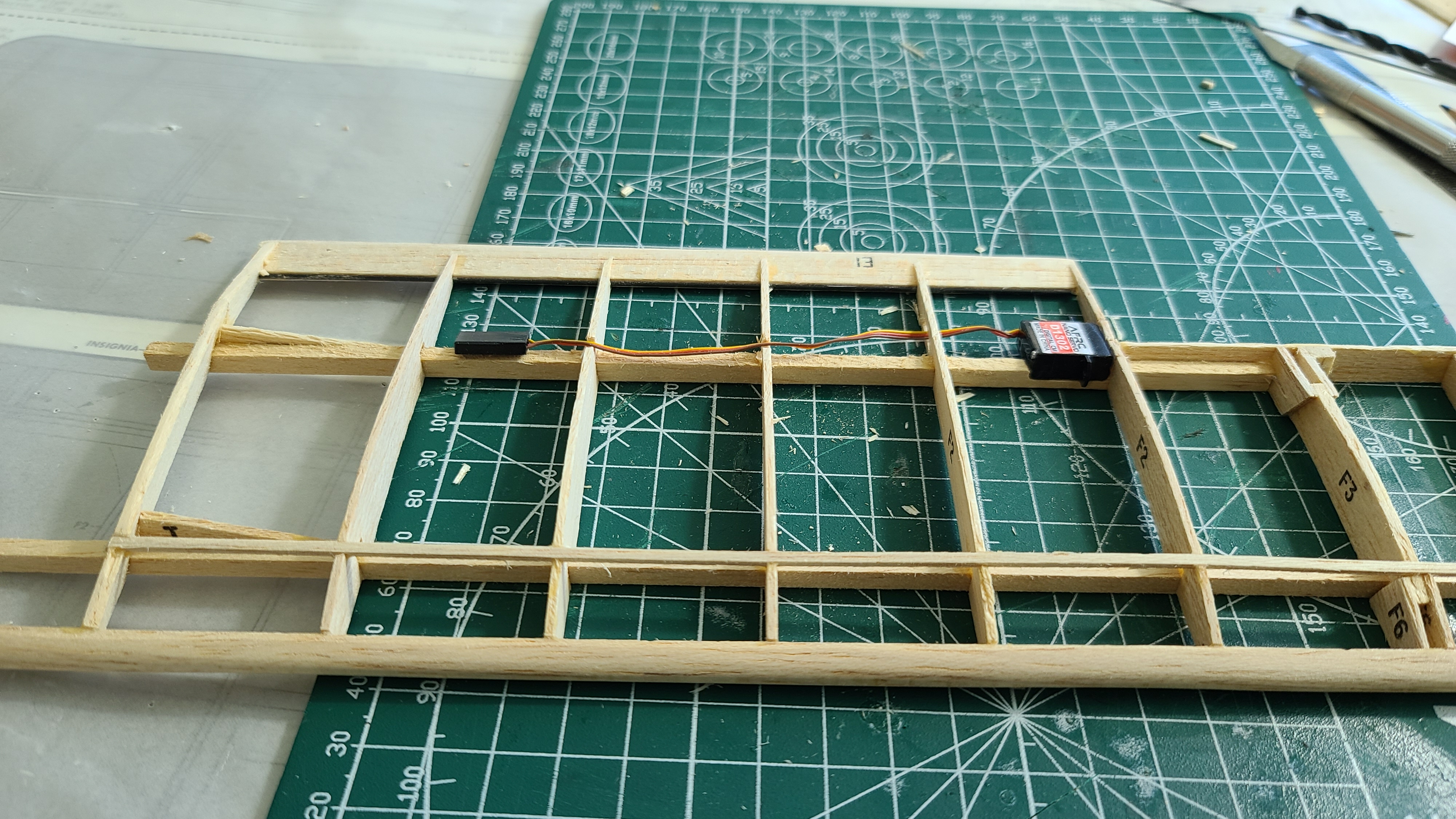 First I’m going to mount servos out on the wing. I’m actually thinking that because this is a biplane which will have 4 ailerons, the torque required for each of them is much smaller as its divided by 4.