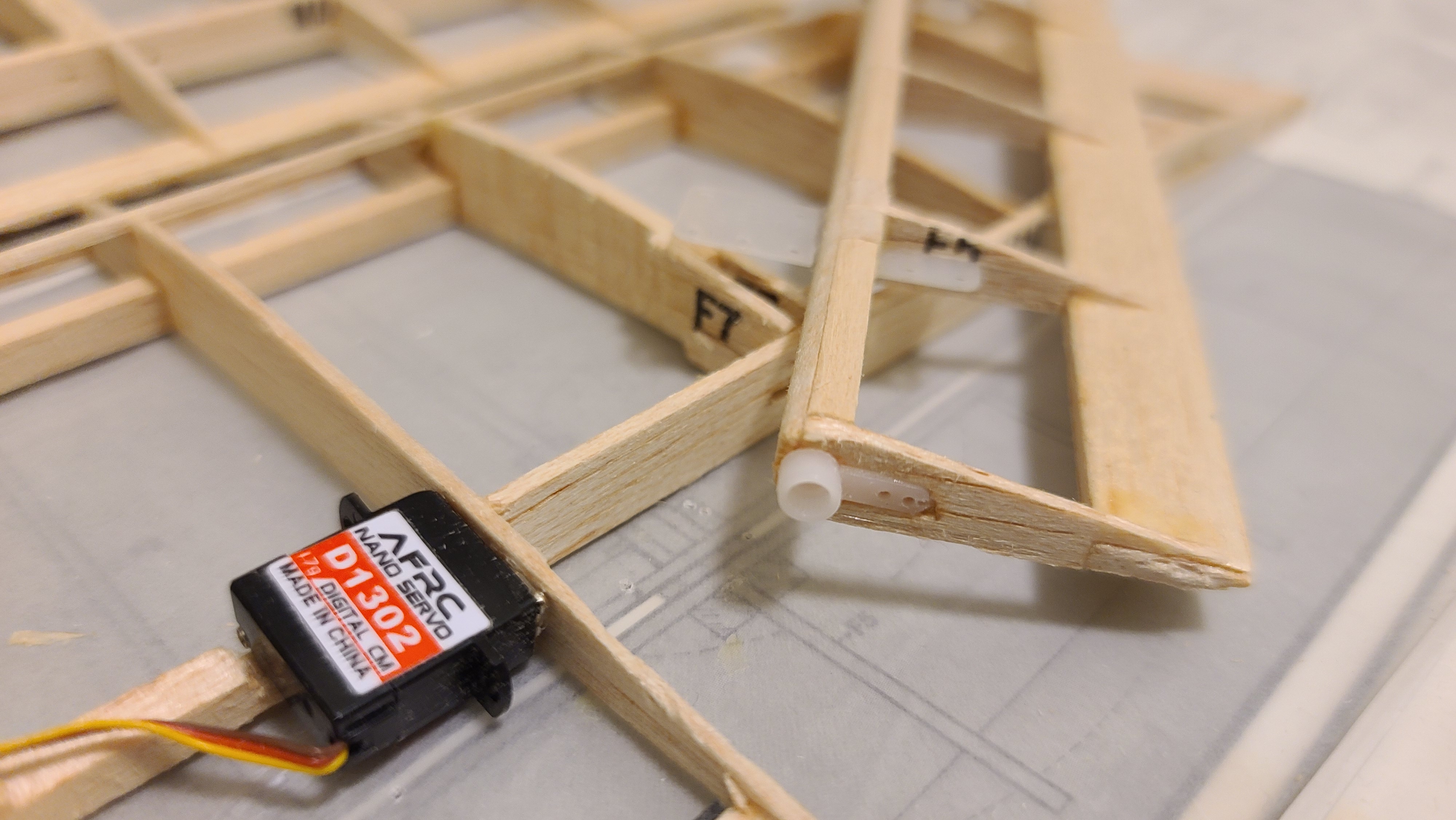 So I’ve been doing more thinking and shopping and found some absolutely amazing tiny 1.7g AFRC D1302 digital servos that have torque of 0.15 kg/cm (0.014 Nm) which is exactly what is required for ailerons of this size according to at least 2 different surface area/torque calculators I have found online.