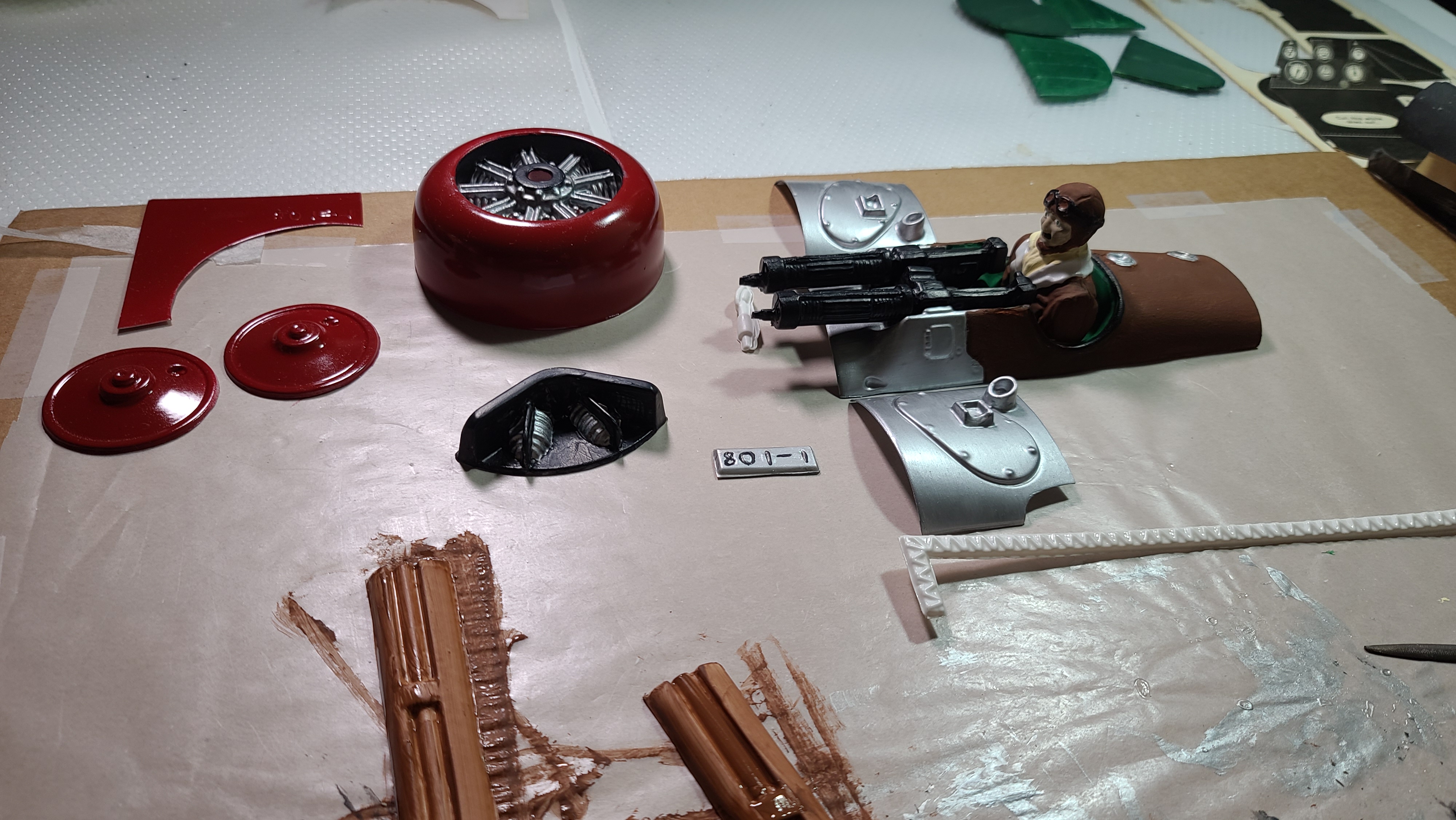 After finishing and trying to paint the wheels, I realized that I should have painted them before putting them on. With all of the very fine detail, such as the rigging and struts, it’s almost impossible to paint after everything is connected, so ask yourself at each step – will I want to paint this? If so – paint it now before installing it. Some things I wish I had painted first: