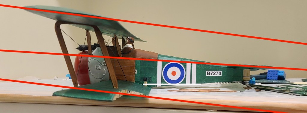The rudder was very twitchy. I think this is because the rudder was not stable and was kind of flapping around a bit. The “paper” hinge for the rudder specified in the instructions needs to be fairly strong paper or thin plastic. I replaced the paper I had used with hinges left over from the Sopwith Pup. They are perfect – it would be great if they get included with the kit.